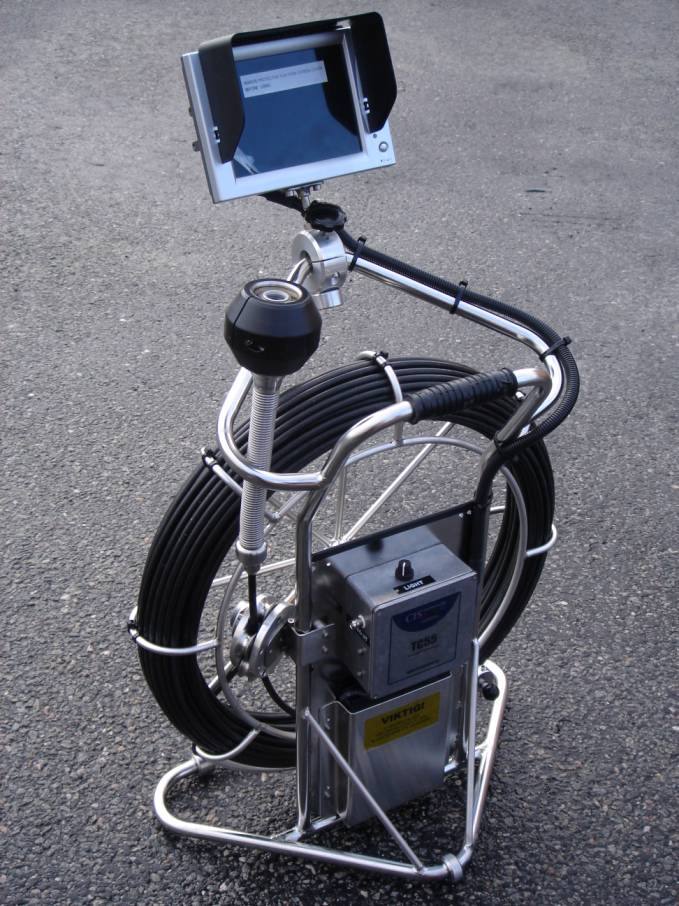 Levereras som standard med 60m rörål(7mm), batteridrift, meterangivelse i bild, utbytbara kamerahuvud, går att byggas för kopling till rörinspektions programet Pipex.